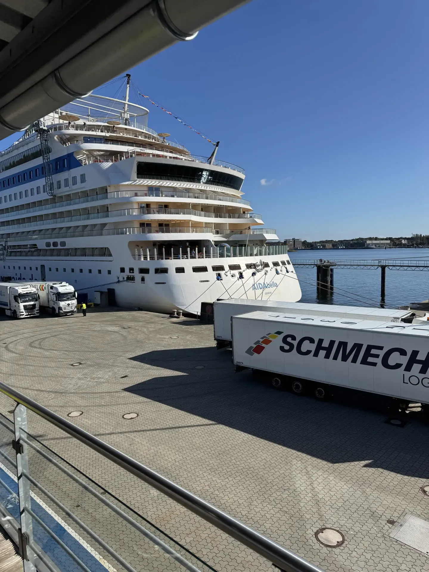 Am 29.09.2024 hieß es für uns: früh aufstehen! Vor uns lagen noch gut zwei Stunden Autofahrt und wir wollten dem Berufsverkehr rund um Hamburg möglichst aus dem Weg gehen. Gefrühstückt wurde ganz entspannt an Bord – denn was gibt’s Besseres als das erste Croissant schon mit Blick auf die Gangway?
