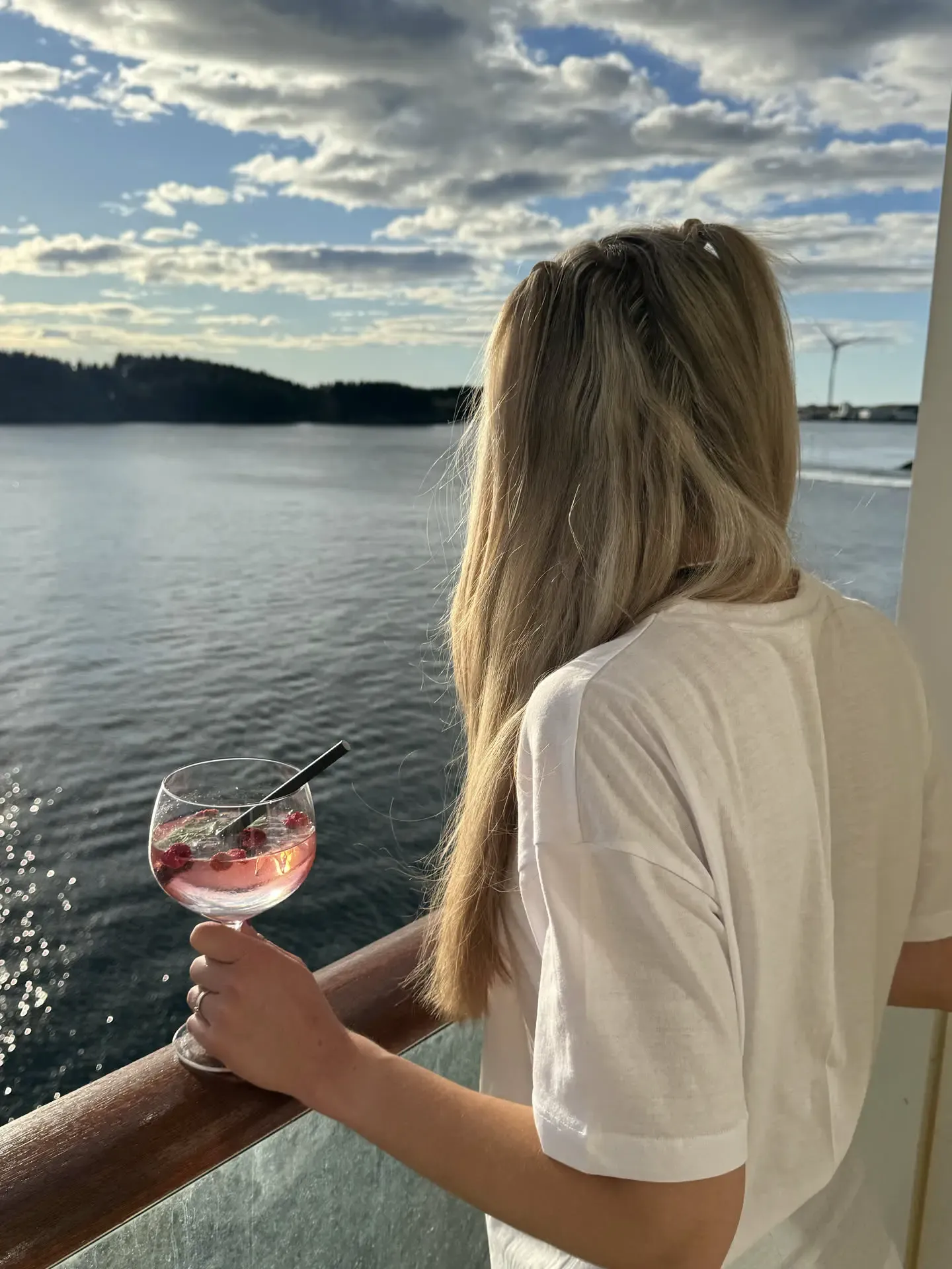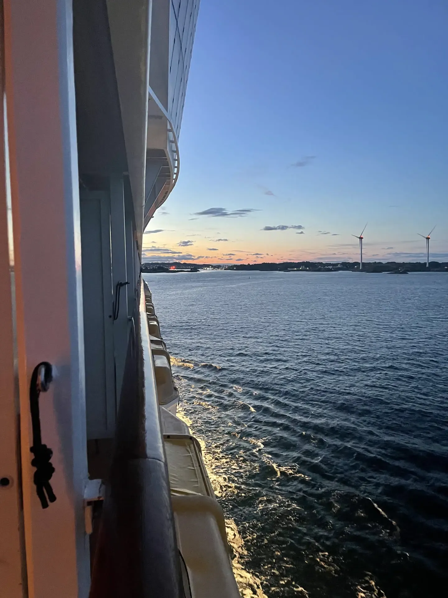 Zurück an Bord haben wir den Tag ganz gemütlich mit dem Auslaufen vom Balkon aus ausklingen lassen – mit Blick auf die norwegische Küste und einem Getränk in der Hand. So darf ein Reisetag enden.