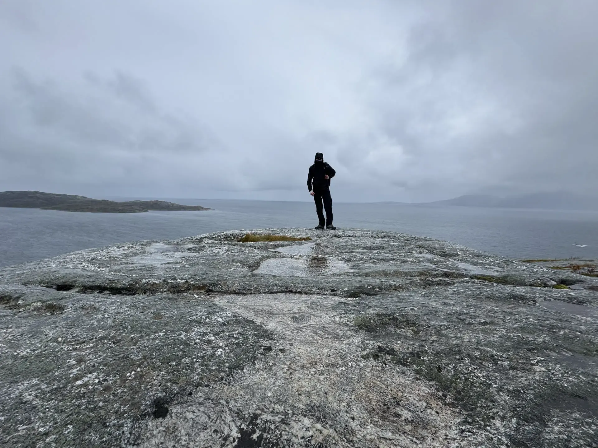 Also fuhren wir entlang der malerischen Küstenstraße durch die Fjorde rund um Alta – mit atemberaubenden Aussichten, auch ohne Nordlichter. Besonders gut gefallen hat uns der Aussichtspunkt „Bubbelen“ – eine kleine Anhöhe, die man in etwa 10–15 Minuten zu Fuß erreicht. Oben angekommen wartet ein wunderschöner Blick über die umliegenden Berge, Fjorde und Wasserfälle.