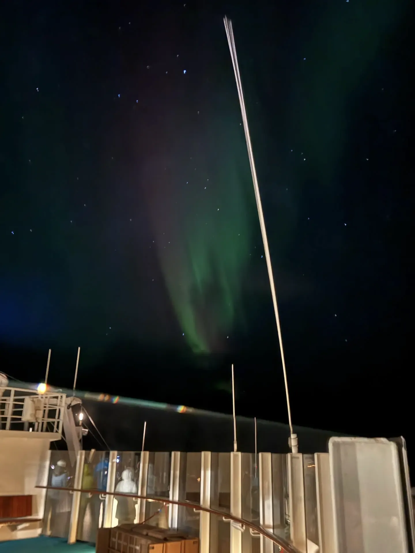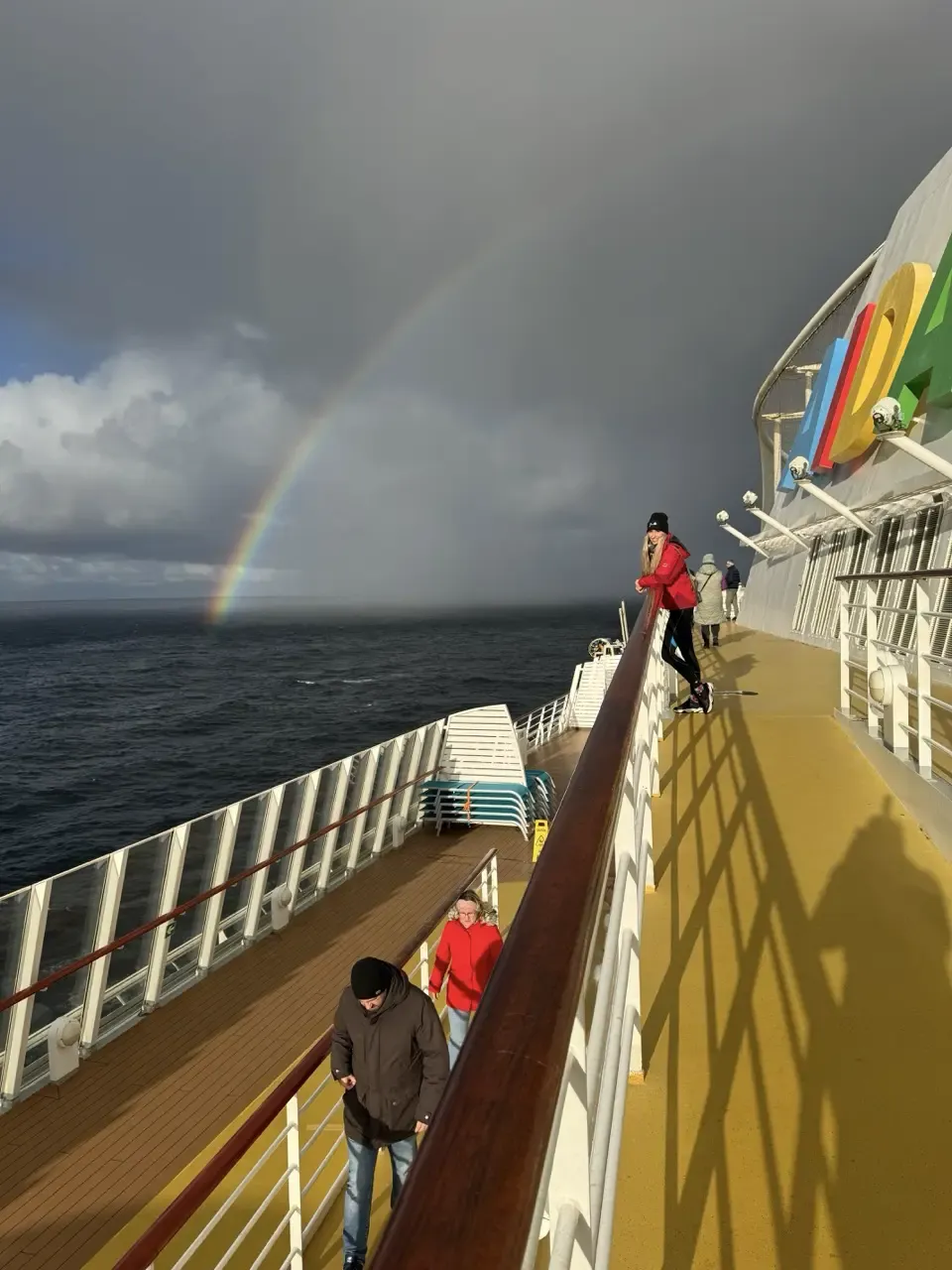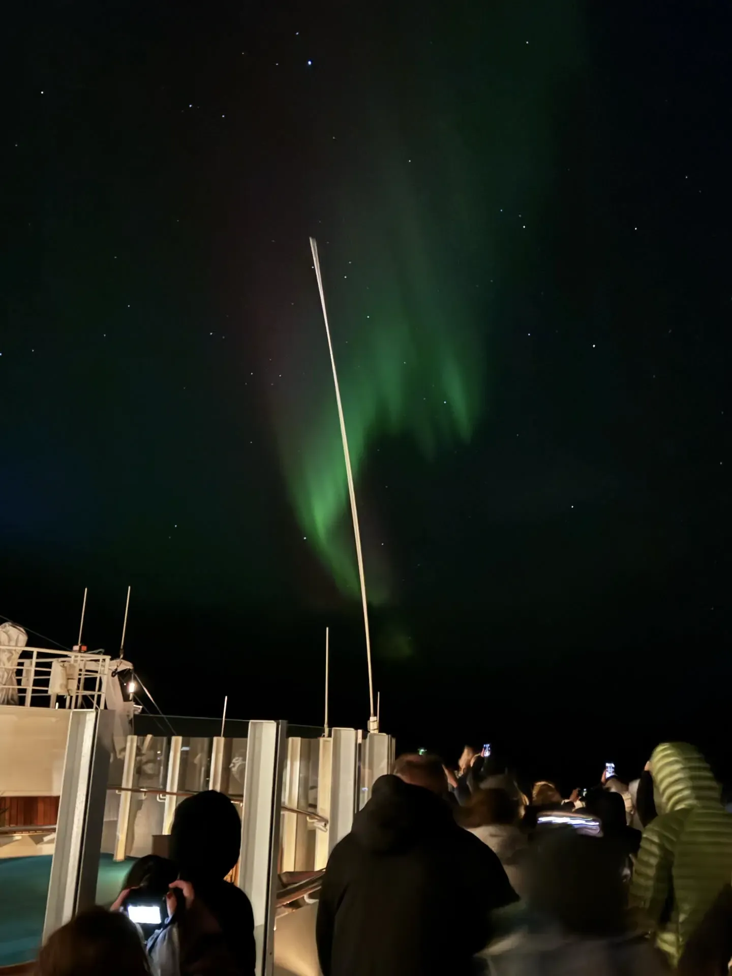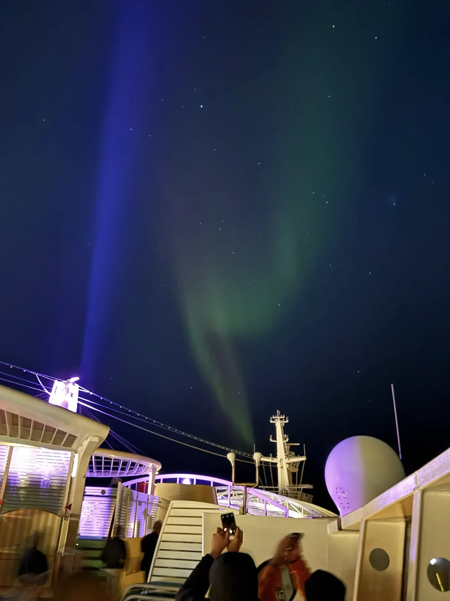 Der dritte Tag unserer Reise war erneut ein Seetag. Nach einem ausgiebigen Frühstück ging’s für uns – wie mittlerweile schon fast zur Routine geworden – auf einen kleinen Spaziergang über das Pooldeck. Das war inzwischen allerdings ziemlich leer, was bei den Temperaturen nördlich des 66. Breitengrads auch kein Wunder ist 😅 Die Luft wurde spürbar kühler, das Meer rauer und die Vorfreude auf mögliche Nordlichter größer.