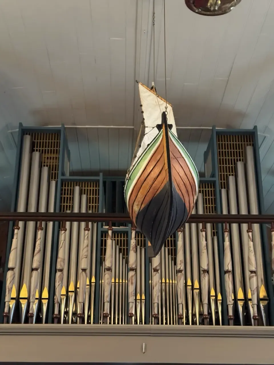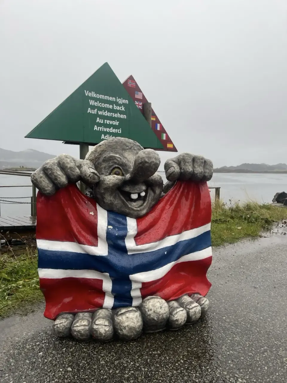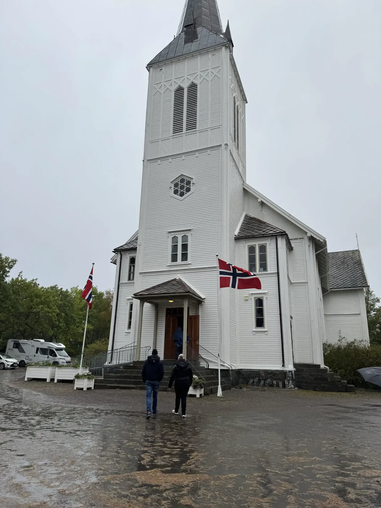 Zuerst ging’s für uns in die Regenklamotten , die zum Glück über Nacht wieder trocken geworden waren. Damit starteten wir auf eigene Faust durch Sortland. Der Hafen liegt, wie bei vielen norwegischen Orten, wieder sehr zentral – man ist also in wenigen Minuten mitten im Ort. Neben ein paar Einkaufsmöglichkeiten und einem kleinen Shoppingcenter findet man hier auch gemütliche Gassen und einen schönen Mix aus moderner und traditioneller Architektur.