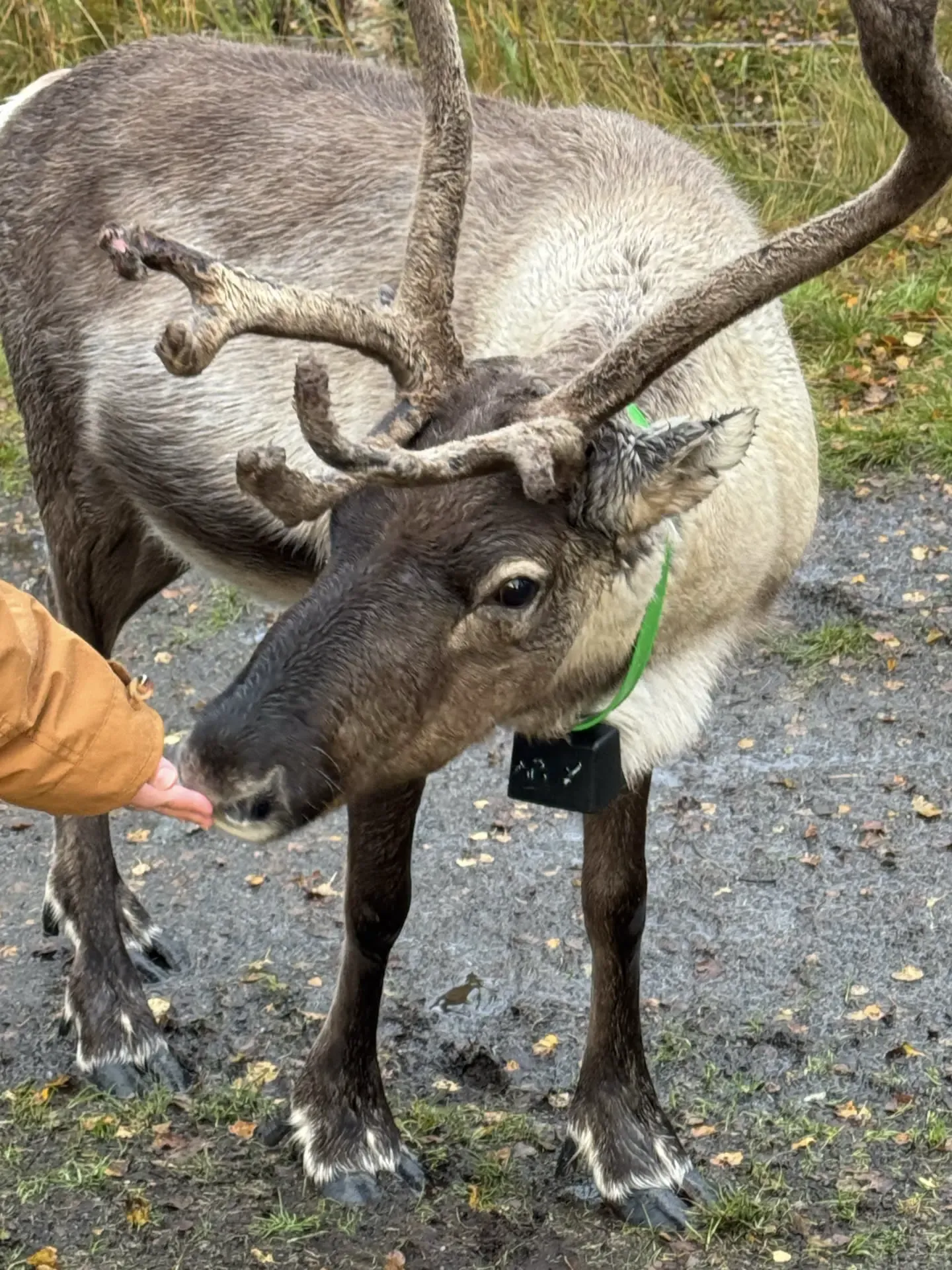 Danach ging es raus zu den Rentieren – für viele in der Gruppe das absolute Highlight. Die Tiere waren neugierig, friedlich und haben sich sichtlich über die Besucher gefreut (oder eher über das Futter 😉). Es war ein tolles Erlebnis, diese Tiere aus der Nähe zu erleben – so nah und ruhig hatten wir uns das gar nicht vorgestellt.