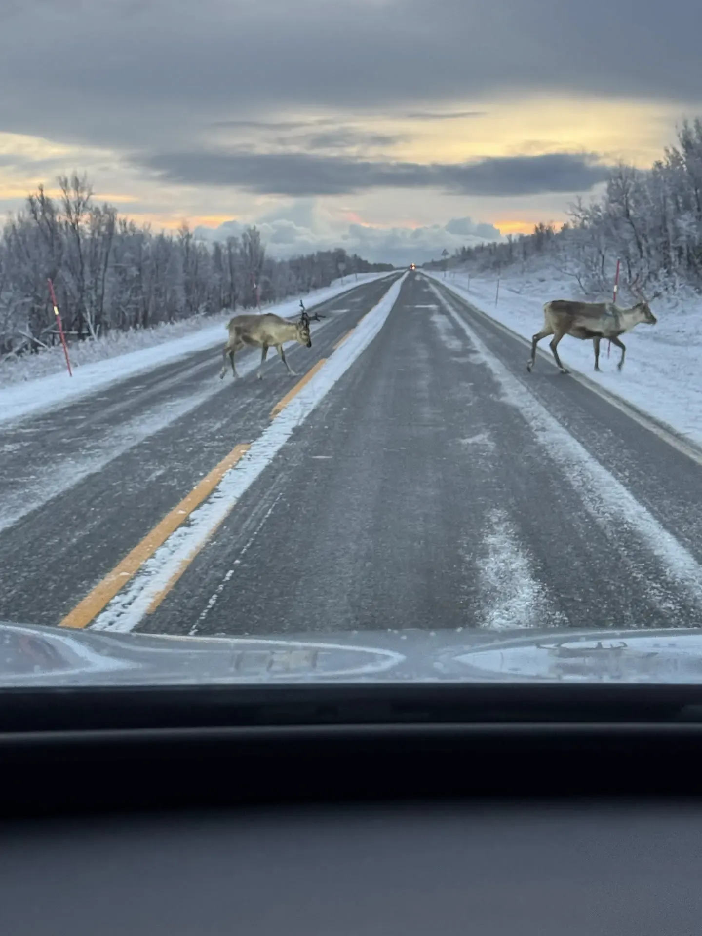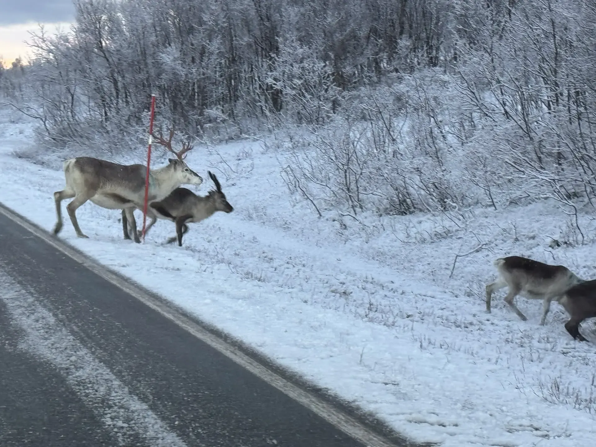 Und dann – völlig unerwartet – trottete eine ganze Rentierherde über die Straße. Einfach magisch.