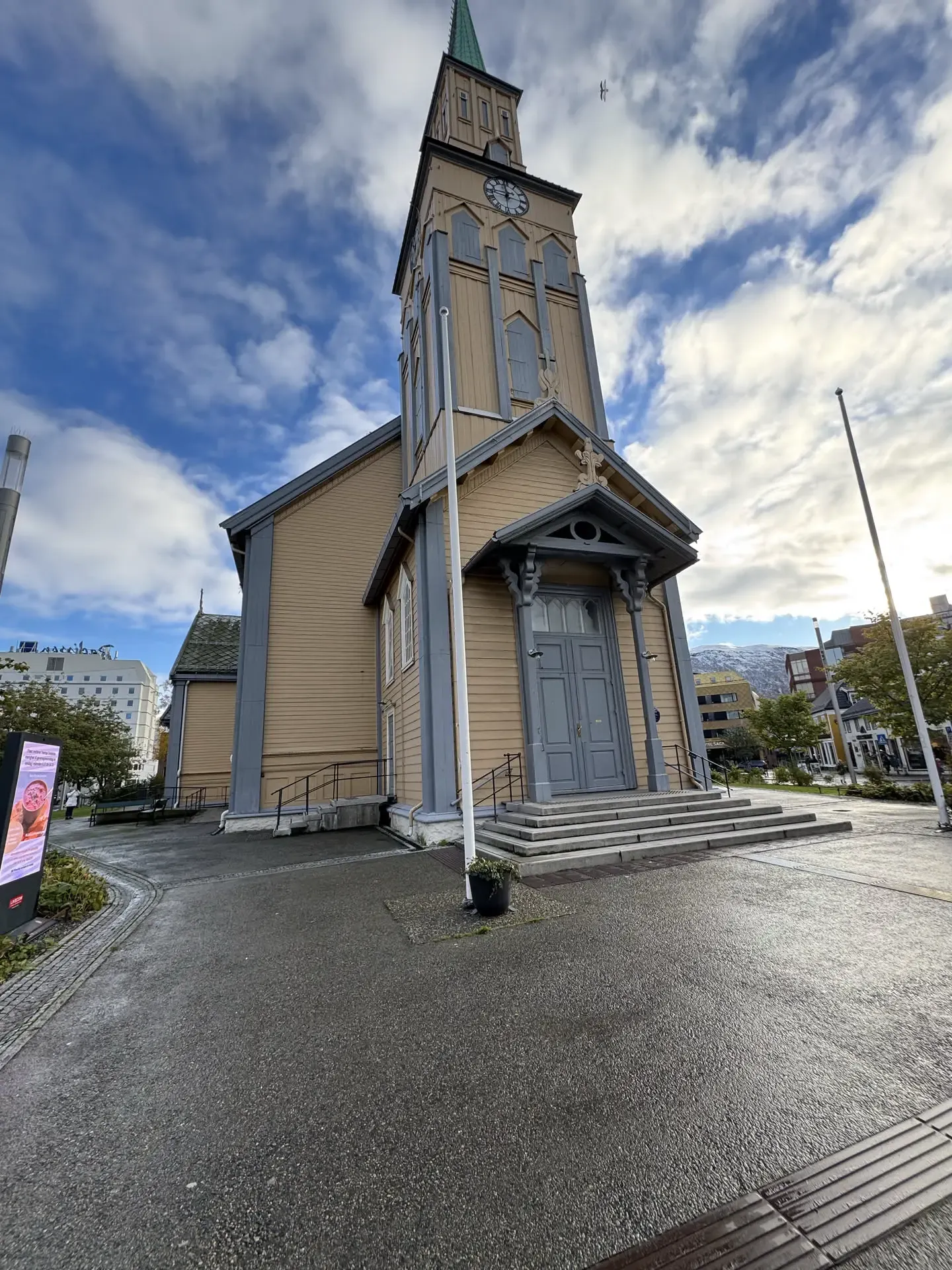 Danach ging’s für uns zu Fuß über die berühmte Tromsøbrua – die Fußgängerbrücke führt direkt zur Eismeerkathedrale , einem der bekanntesten Wahrzeichen der Stadt. Die Architektur ist wirklich beeindruckend! Wer den Weg nicht zu Fuß gehen möchte, kommt übrigens auch mit dem Bus dorthin – oder zurück in die Stadt.