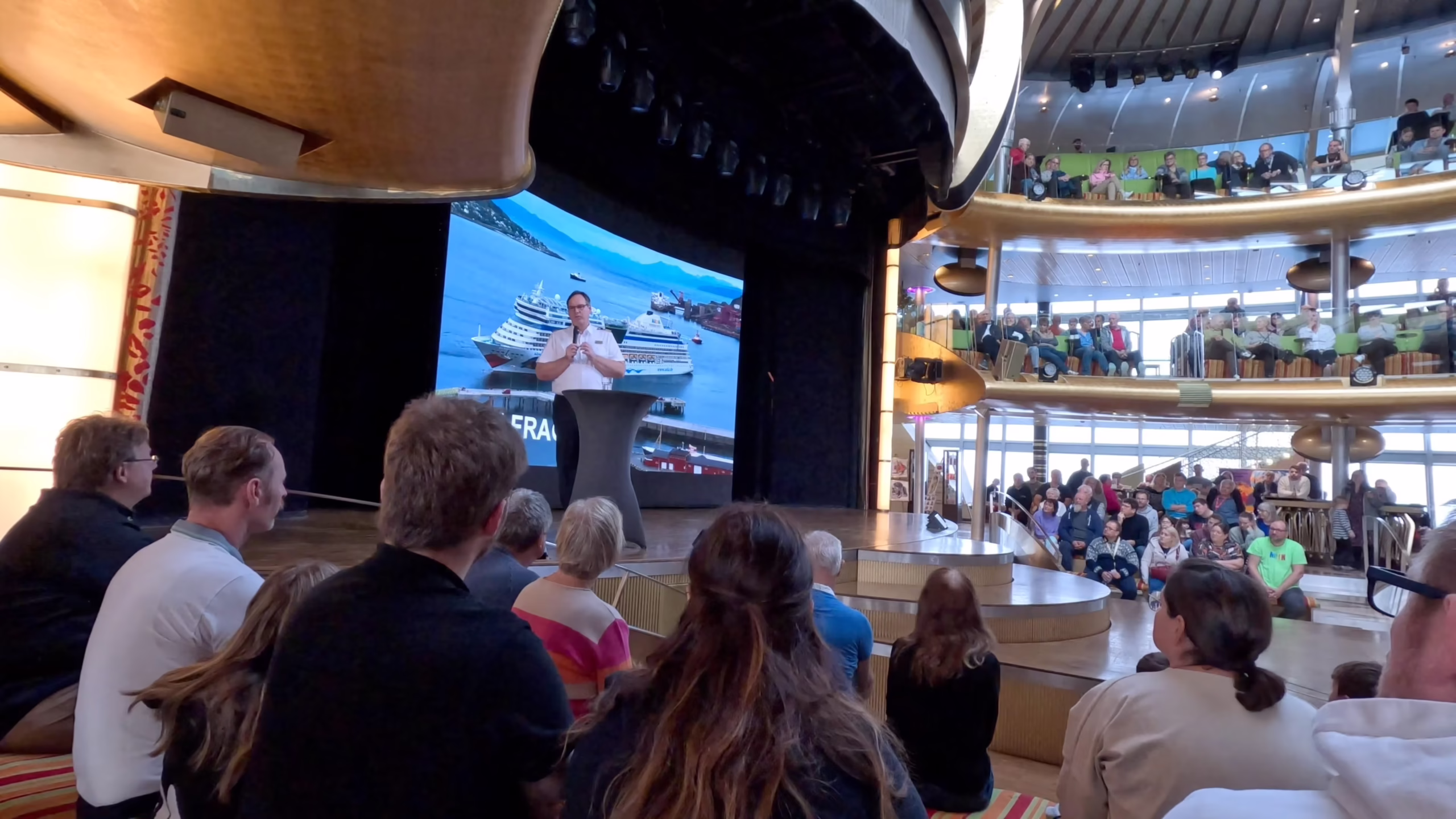 Danach zog es uns ins Theatrium zur Hafen- und Ocean Lounge – unser persönlicher Geheimtipp, gerade auf Routen wie dieser durch Norwegen. Hier bekommt man nicht nur Infos zu den kommenden Häfen und Tipps für Ausflüge, sondern auch spannendes Hintergrundwissen zu Kultur, Geschichte und Traditionen. Mit einem guten Lektor an Bord ist das für uns schon fast Pflichtprogramm – zumindest in Norwegen!