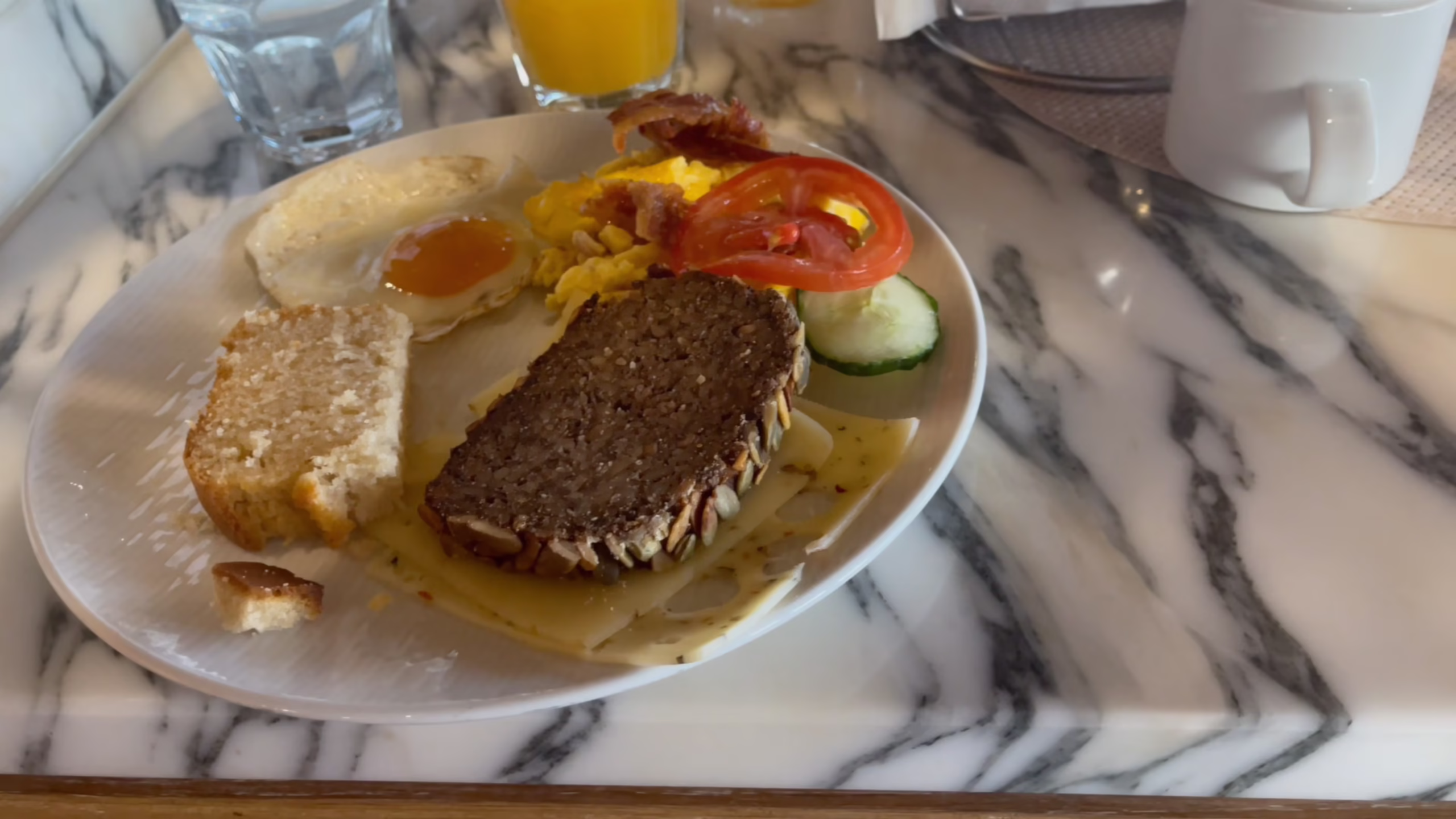 Auf unserem Balkon haben wir direkt die AIDA Heute durchstöbert und uns einen groben Plan für den bevorstehenden Seetag gemacht. Aber bevor es aktiv wurde, ging’s erstmal zum Frühstück ins Bella Vista Restaurant – wie immer reichlich Auswahl und der perfekte Start in den Tag.
