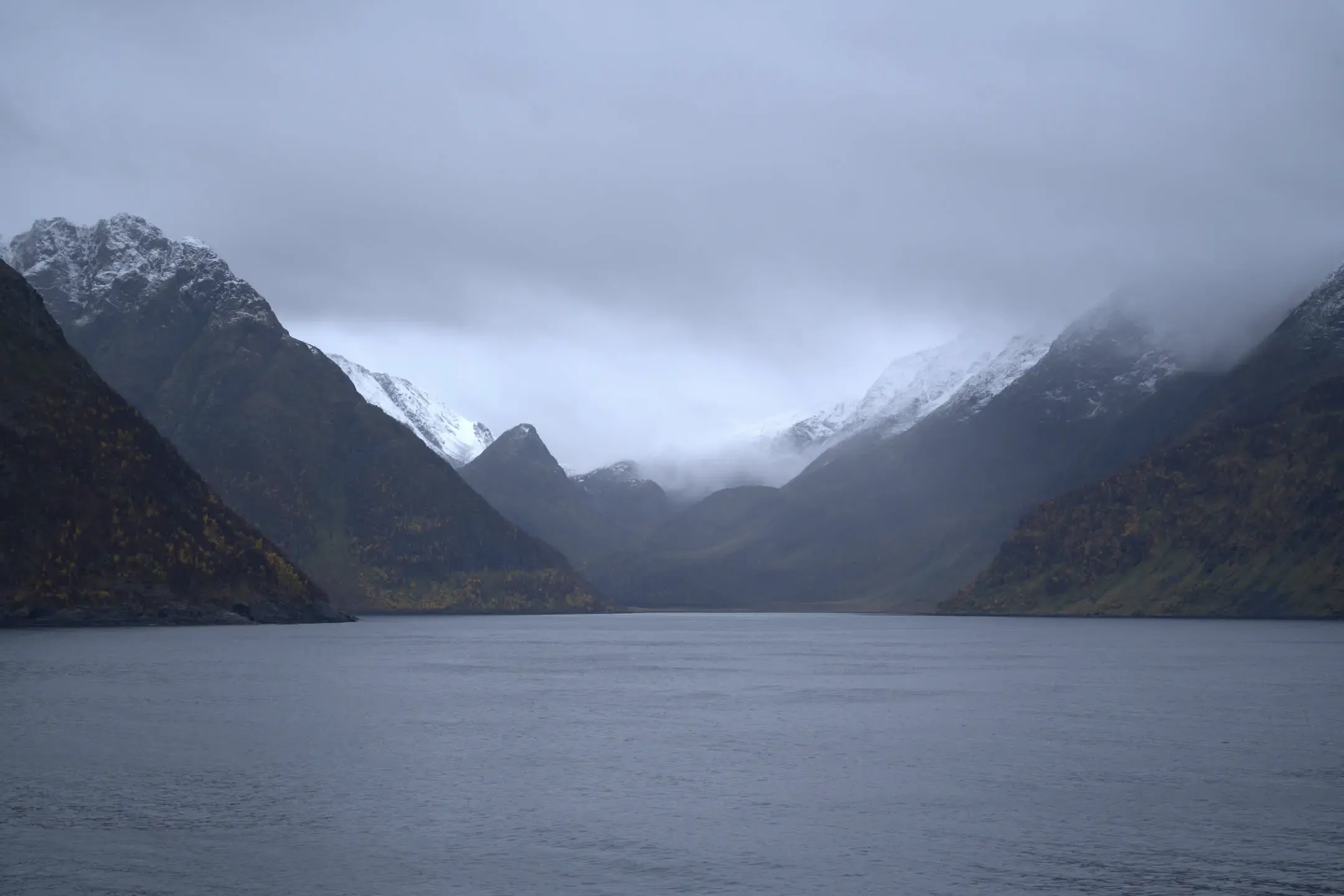 Aber zum Glück war das nur ein kurzer Vorgeschmack auf den Winter Norwegens. Sobald wir auf die andere Seite kamen, klarte es auf – und wir wurden mit einer atemberaubenden Fjordlandschaft belohnt. Der Weg zum Nordkapp war hier wirklich das eigentliche Highlight .