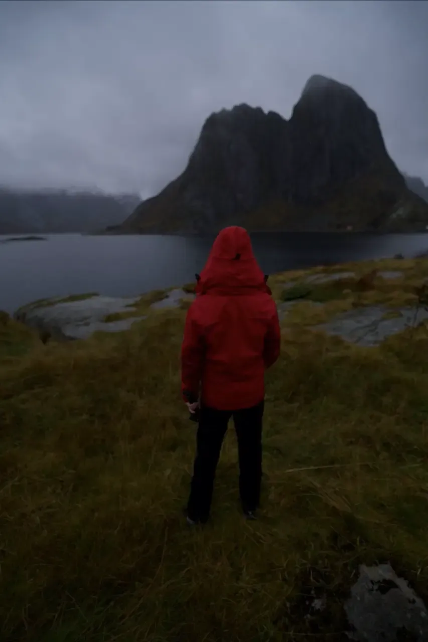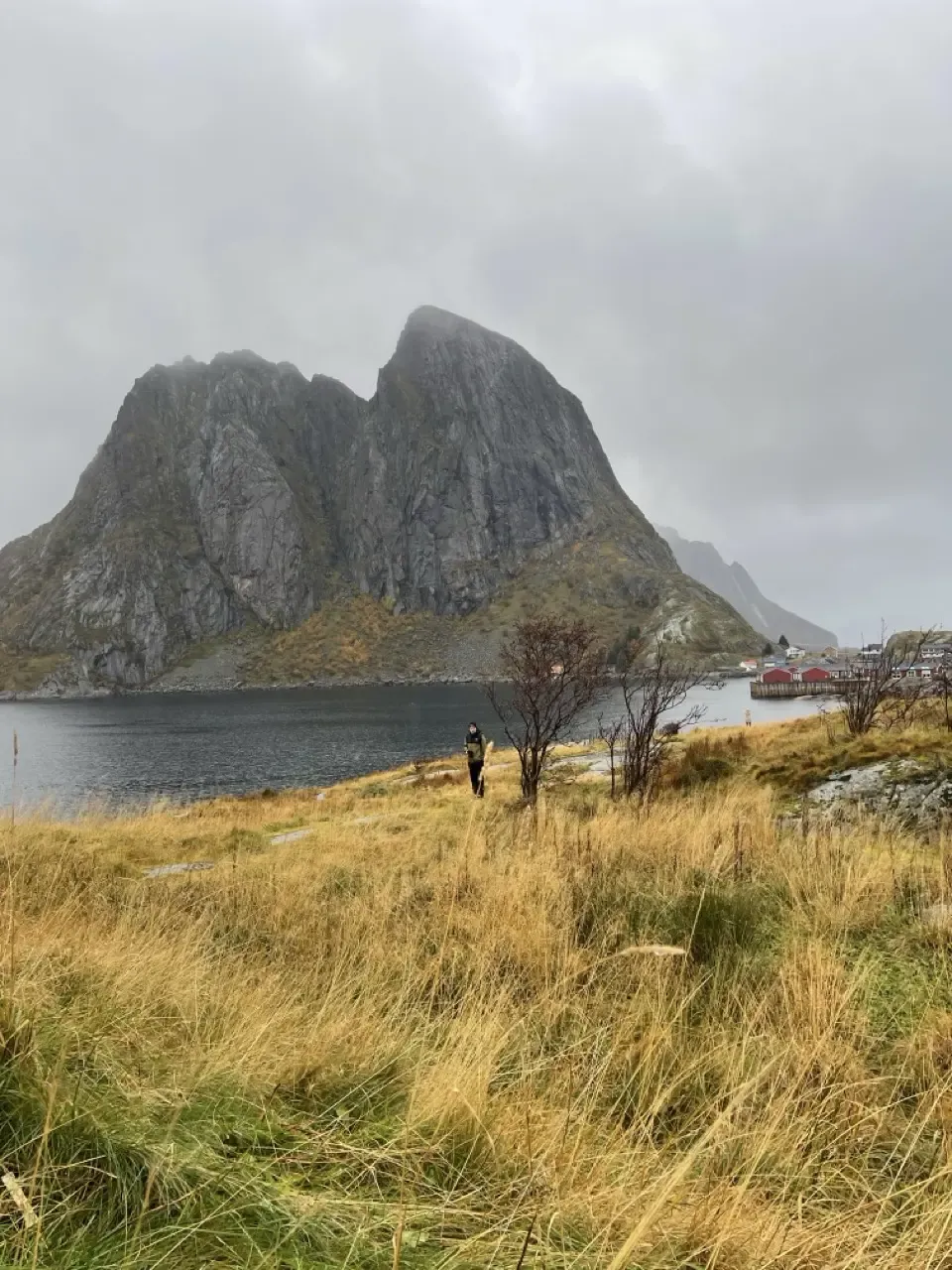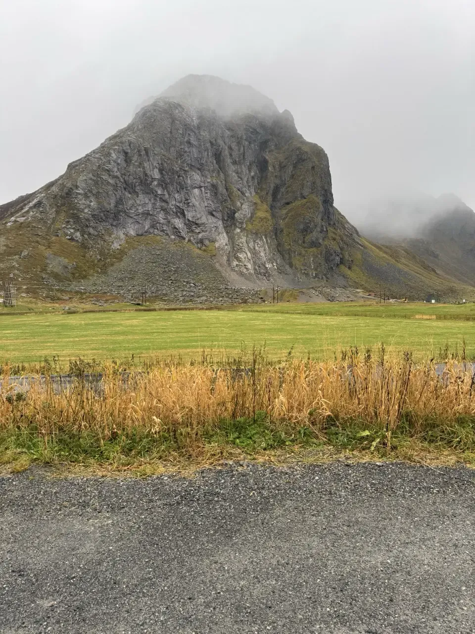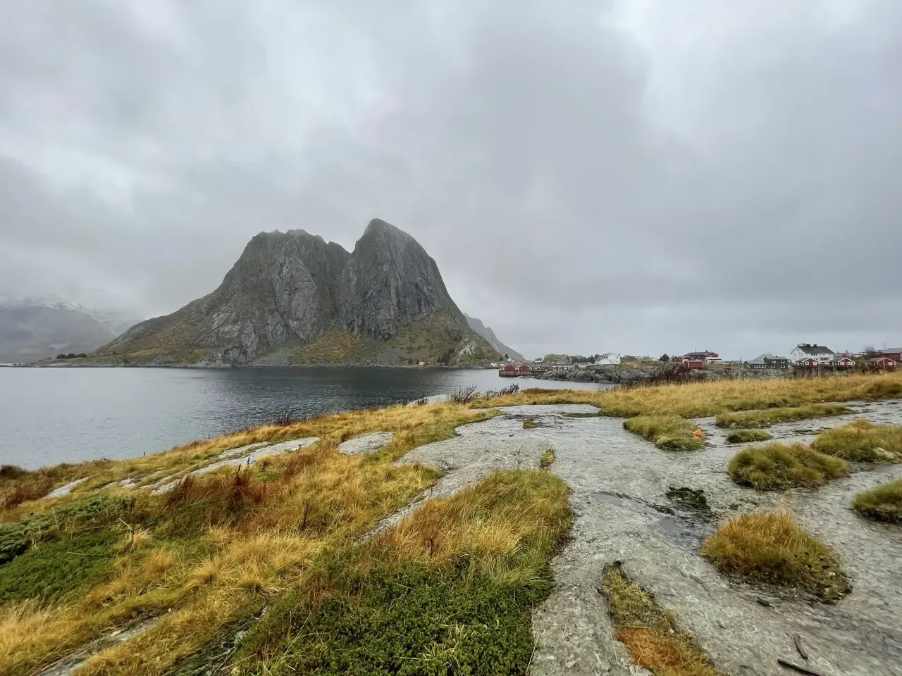 Während der Fahrt erzählte unser Guide viel über Land und Leute , Fischerei, Wetterbedingungen und das Leben auf den Lofoten. Der nächste Fotostopp lag an einem Aussichtspunkt mit Blick auf den Reinebringen , einen der berühmtesten Berge der Region. Der Anblick ist auch bei Regen beeindruckend – bei Sonne muss der Ausblick vom Gipfel unvergesslich sein. Der Berg ist übrigens 448 Meter hoch und der Wanderweg dorthin hat über 1.500 Steinstufen , die von nepalesischen Sherpas gebaut wurden!