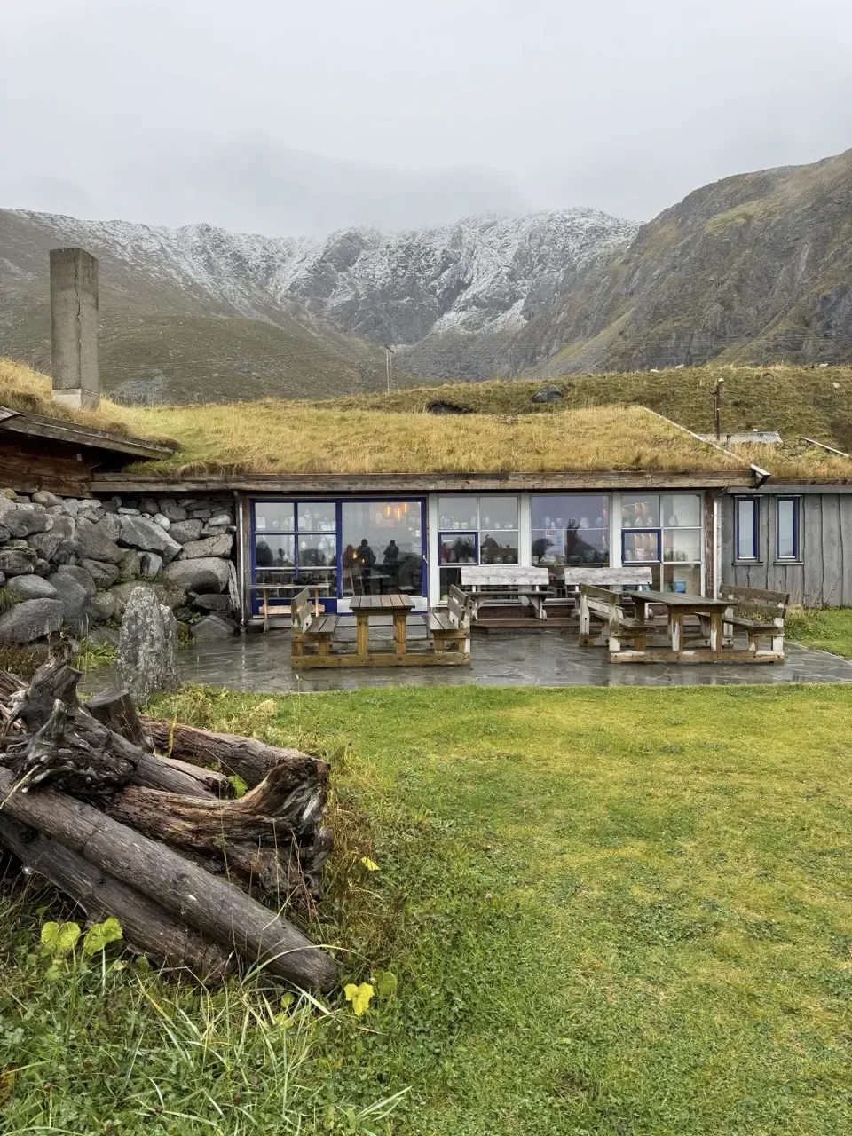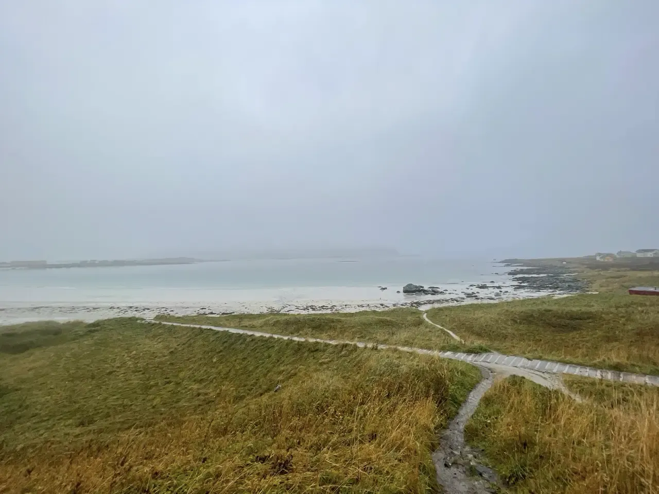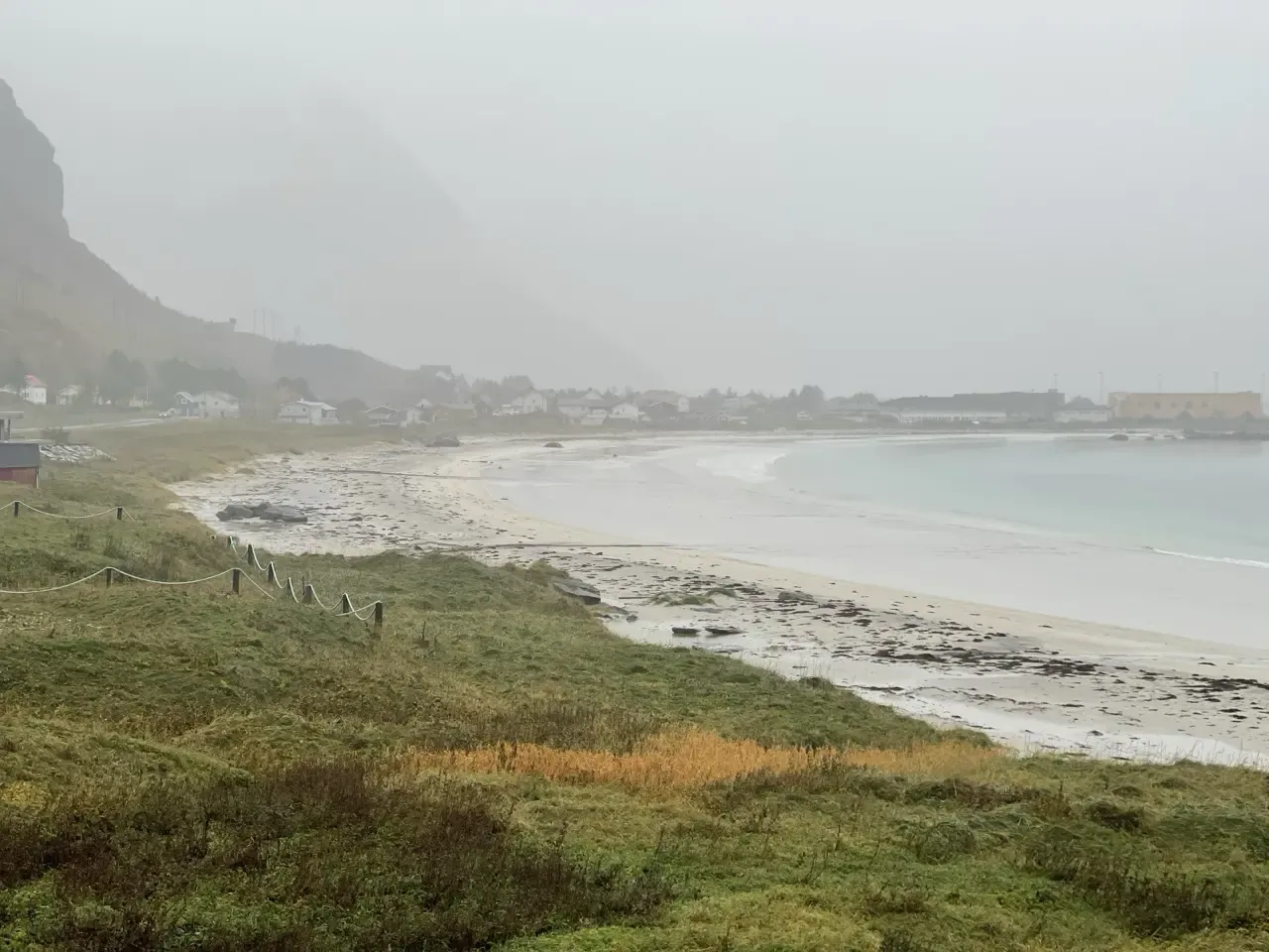 Weiter ging es zum Strand von Ramberg , einem der bekanntesten Sandstrände der Lofoten. Der Kontrast aus weißem Sand, türkisblauem Wasser und den schroffen, grünen Bergen im Hintergrund ist wirklich atemberaubend. Kein Wunder, dass hier oft Fotos für Reisekataloge entstehen. Ramberg selbst ist ein kleiner Ort mit einem Supermarkt, Café und – ganz wichtig – einer öffentlichen Toilette 😄 Leider wollte das Wetter bei unserem Besuch nicht mitspielen.