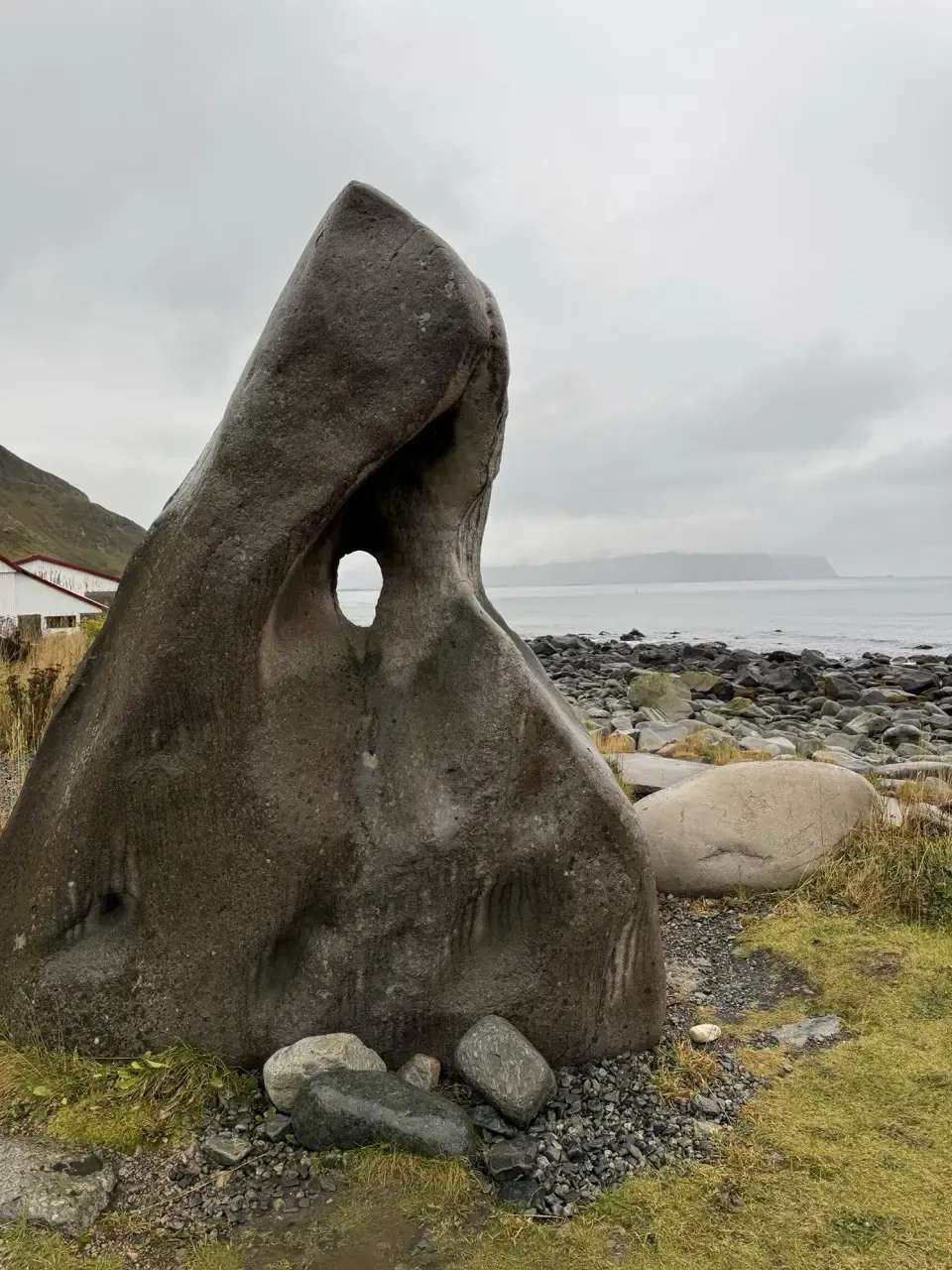 Unser letzter Stopp war das Dorf Vikten , wo sich die bekannte Glashütte Glasshytta Vikten befindet. Hier kann man nicht nur Glasbläsern bei der Arbeit zusehen, sondern auch selbst ein handgemachtes Souvenir mitnehmen. Das Dorf selbst ist ruhig gelegen, mit schwarzen Stränden, steilen Klippen und kleinen, windschiefen Hütten – typisch nordnorwegisch.