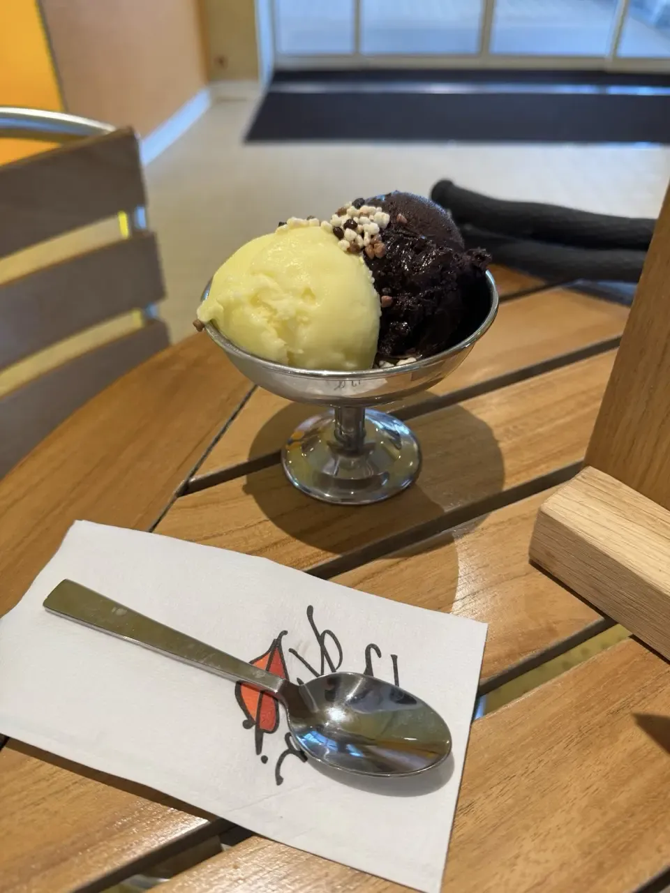 Gegen Mittag haben wir einen kleinen Spaziergang übers Pooldeck gemacht – und wow, war das windig! Als kleine Belohnung gab es danach noch einen Eisbecher .