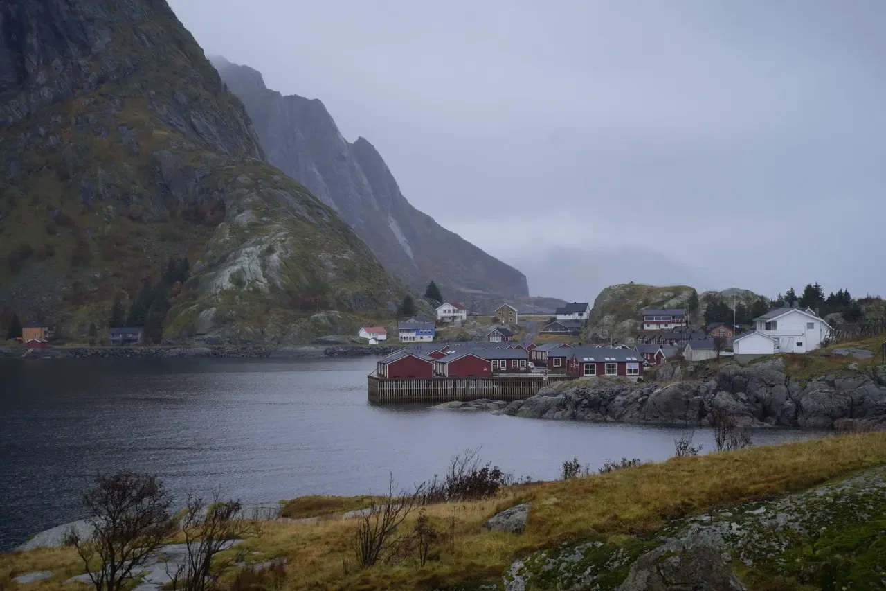 Ja, der Ort heißt wirklich nur “ Å ” – der letzte Buchstabe im norwegischen Alphabet. Hier hatten wir etwas mehr Zeit. Das Dorf wirkt wie ein lebendiges Museum : rote Fischerhütten, Trockenfisch an Holzgestellen und das bekannte Norwegische Stockfischmuseum , das ihr gegen einen kleinen Eintritt besuchen könnt. Å ist der südlichste Ort auf den Lofoten, bis hierher führt auch die berühmte Europastraße E10 .