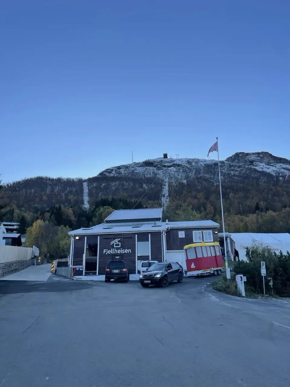 Von dort sind es etwa 10 Minuten zu Fuß bis zur Talstation der Seilbahn Fjellheisen . Wer sportlich unterwegs ist, kann den Berg übrigens auch hochwandern – dafür gibt es einen gut ausgeschilderten Wanderweg (die „Sherpatreppen“). Wir haben uns allerdings für den gemütlichen Weg entschieden 😉