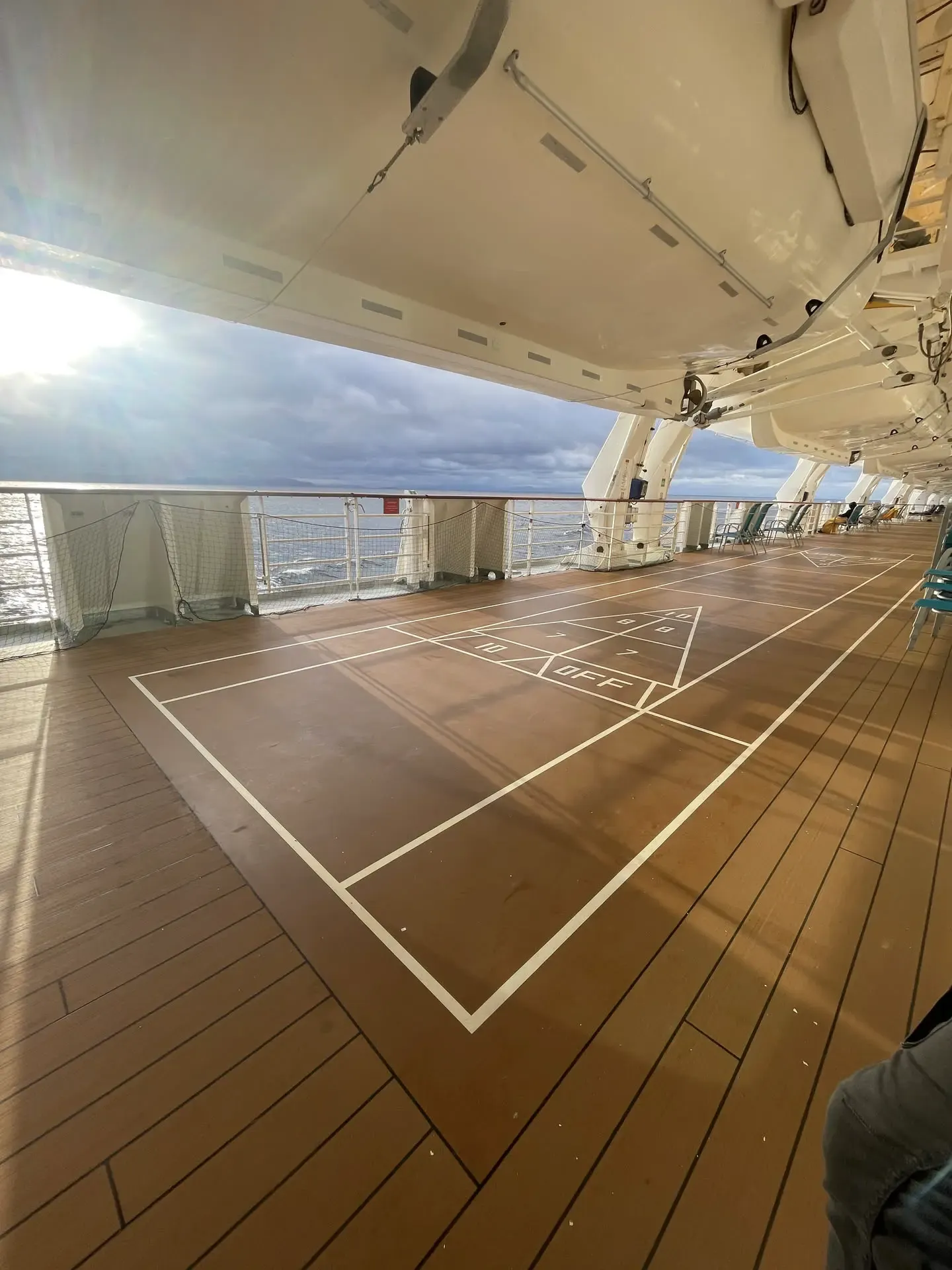 Zum ersten Mal auf dieser Reise haben wir es auch geschafft, beim Shuffleboard vorbeizuschauen. Ein unterschätzter Klassiker und genau das Richtige, um sich an einem Seetag ein bisschen die Zeit zu vertreiben. Den Nachmittag haben wir dann ganz entspannt im Theatrium verbracht und uns danach bei Best Pizza @Sea mit einer Pizza (und einem kleinen Glas Weißwein 😉) belohnt.