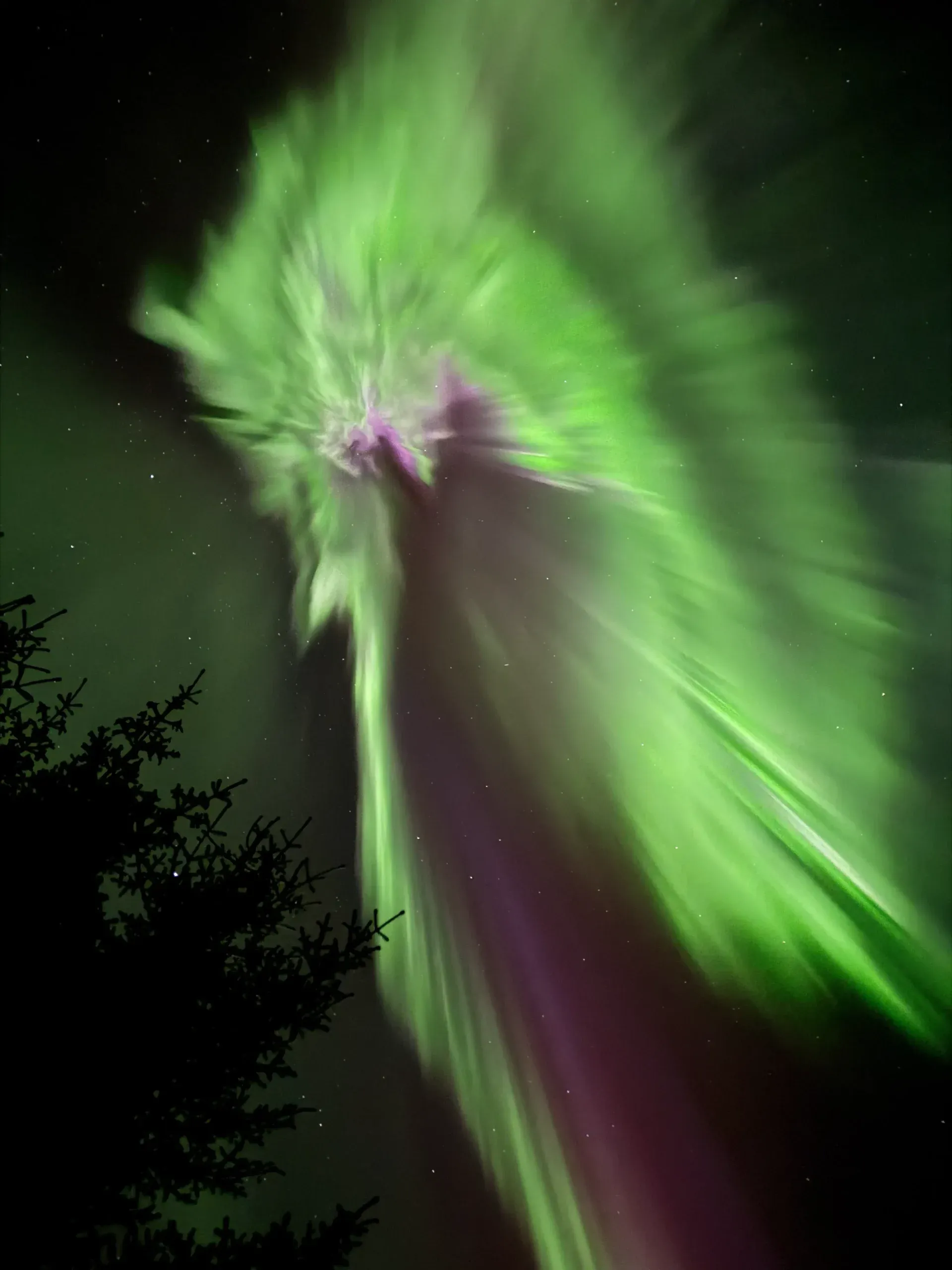 Und dann passierte es ganz plötzlich – aus dem Nichts : Die Nordlichter tauchten am Himmel auf , mit bloßem Auge klar und deutlich zu erkennen! Ein absolut magischer Moment. Die grünlich schimmernden Schleier bewegten sich sanft über den Himmel, fast wie in Zeitlupe – ein Gefühl, das man kaum beschreiben kann.